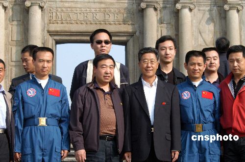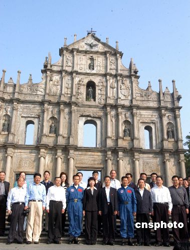 航天代表团成员于昨日上午九时十五分抵达大三巴牌坊,在澳门文化局长何丽钻的陪同下游览牌坊和参观澳门博物馆。何丽钻向费俊龙及聂海胜逐一介绍大三巴的历史事迹及博物馆内的文化遗物。胡世祥更向在场传媒高呼:“文化遗产,真好!”