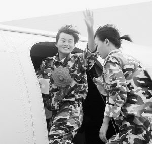 中新网12月2日电 据解放军报报道,11月20日,被誉为“西沙第一女兵”的海军驻西沙群岛某部一级士官蔡秀娟,和另外两位服役期满的战友李乔、苏玲一起,告别守卫了5年的西沙永兴岛,乘上换班专机退伍返乡。