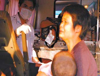 下午4时20分,民警谭劲松和廖某的表弟一起来到三楼房间内,并将水放到地上,廖某在拿过水后,将怀里的孩子交给了谭劲松,民警马上将孩子抱出房间,送上早已守候在一旁的急救车。孩子马上被送往附近的横岗医院,在医生建议下,又送往大医院观察。