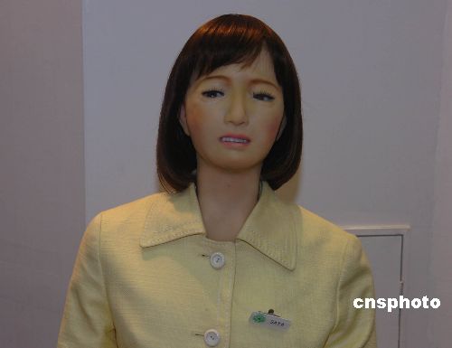 正在东京举行的二00五国际机器人展,推出一批最具前沿成果的新款机器人。图为东京理工大学工学部开发的一款具备多种表情的机器人,这个被命名为“萨亚”的前台服务员型机器人,可在脸上呈现出惊讶、恐惧、厌恶、愤怒、幸福、悲伤为主要类型的多种复杂表情,并可进行简单语言问答。 作者:王健