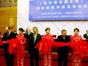 中新社北京十二月二日电 由香港中国文化研究院创办的“灿烂的中国文明”简体字版网站今日在北京举行启动仪式。这个曾获联合国首届信息峰会“世界最佳文化网站大奖”的网站点击率迄今已逾十三亿,成为名副其实的“有关中国历史和文化的一个强有力的线上档案馆”。
