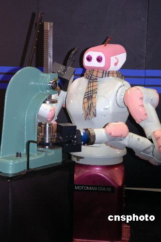 正在东京举行的二00五国际机器人展,推出一批最前沿成果的新款机器人。图为有关厂商新近开发并大力推介的工作机器人,可代替现场操作工人从事组装、物流等多项工作。作者:王健