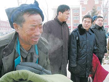中新网12月5日电 据辽沈晚报报道,昨日上午10点,大雪过后的辽宁沈阳北中街路口,一位老人跪在街头,地面上放着一个白色的茶缸,里面有7个一角钱的硬币。