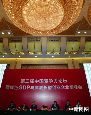 中新网12月10日电 由中国新闻社主办的第三届中国竞争力论坛暨绿色GDP与高成长型企业高峰论坛10日在北京人民大会堂开幕。