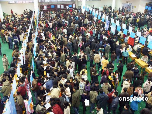 12月10日,河南省开封市2005年大中专毕业生就业洽谈会上,来自全国各地的近200家用人单位纷纷在此选聘才俊,4000余名学子参加应聘。作者:李俊生