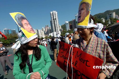 多图:世界各地反世贸人士在香港集会游行