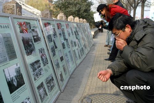 12月11日,济南“五三惨案”纪念碑前,一群来自各高校的青年志愿者在街头进行“南京大屠杀68周年”纪念宣传活动,呼吁人们牢记那段沉痛的历史。12月13日是震惊中外的南京大屠杀68周年纪念日。 作者:周青先