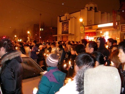 当地时间十一日晚,三百多名中国留学生聚集在两位中国留学生遇害的渥太华“富尔豪斯卡拉OK厅”门前,举行“和平,肃静,默哀,安静地送别朋友”烛光悼念活动,对两个年轻生命的逝去表达痛惜之情。加东加西的多伦多、温哥华、蒙特利尔、魁北克城、卡尔加里等地的中国留学生也以各种方式开展悼念活动。