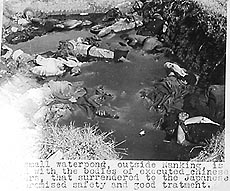 这是一张日军南京大屠杀的典型照片,东中野等人对这张也予以否认,狡辩说池塘边有草,而在冬天南京是没有草的,所以不是在南京郊外;池塘里见到的尸体不多,云云。