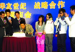 中新网12月13日电 京华时报报道,昨天下午,华谊兄弟音乐公司与华友世纪通讯有限公司的战略合作发布会在嘉里中心举行,华谊旗下的羽·泉、黄征、李慧珍和张靓颖悉数到场。由于当天恰好是黄征的生日,两家公司在签署合作协议之后,在举办发布会的大厅内随即上演一场颇为隆重的生日会。