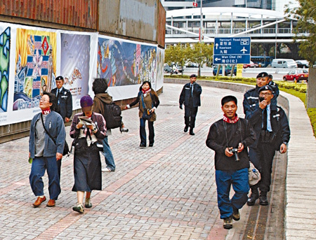 韩国民主工党(Korean Democratic Labour Party),大队昨(十二日)乘机抵港,到湾仔“游览”即发觉遭便衣探员二十四小时监视举动,无论他们在乌溪沙青年旅舍内的生活、外出购物及游览等活动,均有类似便衣探员人物跟踪。他们一行十二男女,昨日首次在港自由活动,在行经接近会场的湾仔区,更遇上如临大敌的警员“贴身招待”。