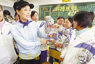 活动当天,叶童抽出宝贵时间,应中国儿童少年基金会邀请特地从香港坐早班机赶来北京市私立树人学校,看望这里受资助的春蕾班的模范孩子们,并且与孩子们亲切的交流起生活中遇到的问题以及未来的理想,还用英语与这些孩子们进行对话沟通,对于孩子们在这个年纪所掌握的英语水平叶童表示非常高兴。不仅如此,她还为同学们带来精美的糖果等礼物,孩子们拿着叶童亲手交给她们的糖果都激动不已。随后,孩子们簇拥着叶童来到了她们的寝室参观,最后大家都依依不舍地与叶童告别,纷纷表示要好好学习,不辜负那些资助她们的恩人,将来一定努力回报社会。