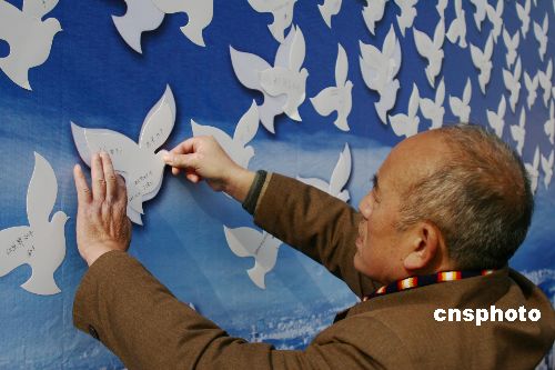 中新社南京十二月十三日电 (记者 王国安 丁梅)凄厉的警报声响彻南京城上空。今天上午,三千军民聚集在侵华日军南京大屠杀遇难同胞纪念馆悼念广场,举行悼念南京大屠杀三十万同胞遇难六十八周年仪式暨南京国际和平日集会。