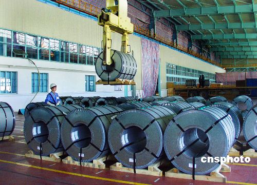 2005年12月14日,近日国家发改委工业司在调查研究的基础上,提出了《钢铁工业控制总量、淘汰落后、加快结构调整的通知》,力求在“十一五”期间,钢的年生产能力控制在4亿吨左右,淘汰1亿吨落后的炼铁生产能力、5500万吨落后炼钢能力。这意味着,对钢铁行业的宏观调控,仍将继续进行。图为浙江一钢铁公司正在外运钢材。作者:张和平