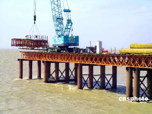 12月14日,黑龙江同江市至海南三亚的中国南北大动脉“同三线”跨越杭州湾的便捷通道——杭州湾跨海大桥南岸9.44公里长栈桥施工已接近尾声,目前已完成9340米,剩余百米正在加紧施工,预计元旦节可全部完工,为主桥施工提供工期保障。作者:王拥军