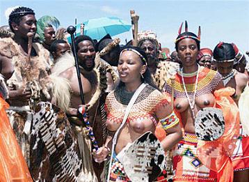 居住在纳米比亚的希姆巴族姑娘在出嫁前,要用红赭石、奶油脂、香草和树脂合成一种香料,并亲手把它们涂在自己身上。它们色彩鲜明,而红色在其中犹为突出,象征着新娘婚后有极强的生命力和生殖能力。在婚礼上,新娘子身穿一身新做的衣服,上面洒满了香水和桔子水等果汁。