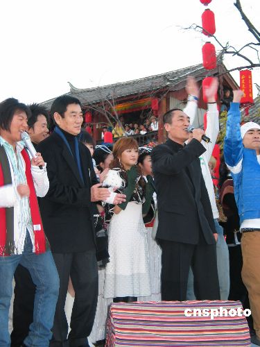 导演张艺谋与影片主演、日本著名男演员高仓健亲赴丽江,参加今天在丽江古城举行的首映式。与影片所讲述的平民故事一样,整台首映演出除张、高二人外,没有一个大牌明星,完全由丽江当地的少数民族歌手和中国平民选秀中的胜出者担当。