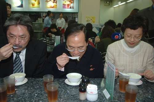 下午近五时,曾荫权在工商及科技局局长曾俊华、民政事务总署署长陈甘美华陪同下,到湾仔及铜锣湾探望受世贸会议影响的商铺。曾荫权一行人到铜锣湾一间食肆进食甜品“双皮奶”,并与店主交谈。