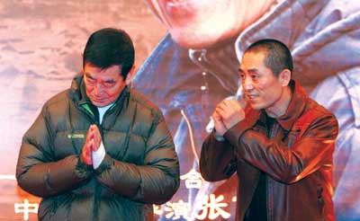 张:《无极》我还没有看,不能做什么评价。大家把这两部电影放在一起讨论,我觉得是好事,会引起大家的注意,这至少对票房有好处。但我自己根本不往这儿想。因为我觉得拍电影,你去跟谁竞争啊?跟谁比啊?全世界有这么多导演、这么多电影,你把目标放在一个人、一部作品上,实在是很可笑的事情。