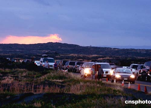 美国夏威夷火山岩浆千万年来滚滚流出,蔚为大观。 各国游客专程蜂拥飞来,岛上形成车龙。