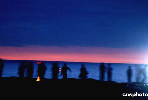 游客每天黄昏等在海滨火山岩上,一睹奇观为快。 人们打着手电筒,在夜色里观赏“大自然的圣诞树”。 | 版权声明:凡标注有“cnsphoto”字样的图片版权均属中国新闻网,未经书面授权,不得转载使用。 |