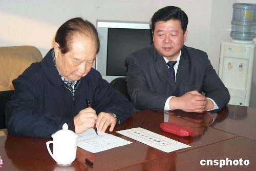 二零零五年一月三十一日,海协会长汪道涵在上海亲笔书信致辜振甫家属,委托即将赴台参加辜振甫追思会的汪老个人代表孙亚夫(右)和李亚飞转交。作者:葛凤章