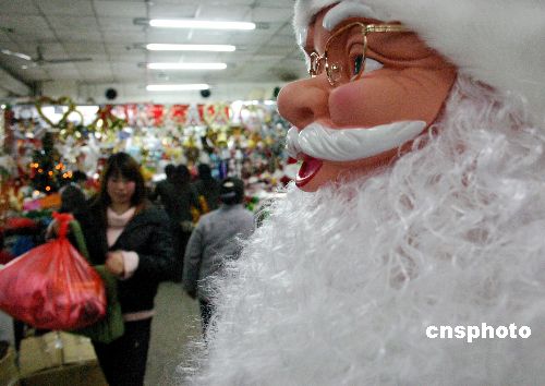 圣诞节临近,12月23日,江苏南京圣诞饰品市场生意火爆。圣诞节给当地市场带来了契机。作者:阿董