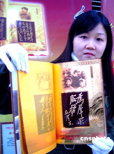 图:黄金版《毛泽东题词手迹》全球限量发行1000套