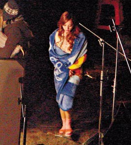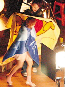 在场的工作人员都穿上厚厚的大衣,唯独Jolin以低胸短裙上阵,导演特地为Jolin准备了一个暖炉,拍摄完一个镜头,工作人员即时上前为Jolin披上浴巾,只可惜浴巾太短,Jolin的玉腿都要暴露于寒风之中。
