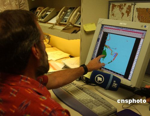 图:美国檀香山海啸报警中心科学家监测太平洋