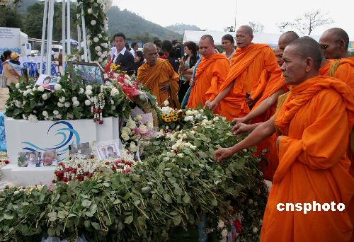 泰国素有佛邦美誉。在印度洋海啸一周年之际,僧侣从各地前来泰国攀牙府临安达曼海地区参加纪念活动,献花祭悼不幸遇难的亡魂。 作者:罗钦文
