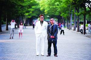 正式加入“鸭子”行列后,短发被染成金色,一身笔挺的西装,与杜汶泽“兄弟”二人模仿《雨人》中的经典镜头从自动扶梯上缓缓降落。