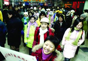 描眉、染发的时髦女生,架着眼镜的文静姑娘,在媒体闪光灯的辉映下,大学生保姆团一出站台就引起西站众多旅客的关注。虽坐了30多个小时的火车,但这些学生脸上并未显出疲态。出站等车时,凛冽的冷风让不少学生打起了寒战,“北京好冷啊!”6点30分,她们坐上了家政公司准备的中巴车,开始了新的旅程。