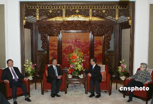十二月二十八日,国务院总理温家宝在北京会见澳门特别行政区行政长官何厚铧。 作者:廖文静
