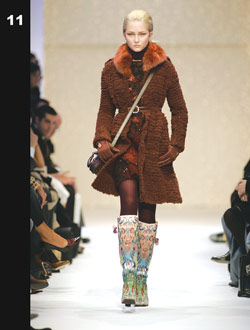 时装向来是时尚的主流,主导着整个时尚界的风向标。无论是靴子、包包、首饰还是彩妆、造型的流行趋势,都要顺应时装的流行趋势。显然,圣洛朗、GUCCI、爱马仕等顶级品牌的人事变动,并没有给时尚界带来太大的振荡,2005年是国际时装界稳步发展的一年。
