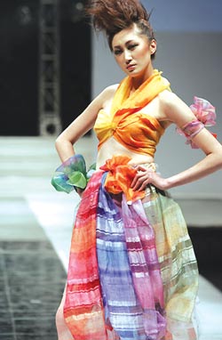 其实桃红、嫩绿等夸张的鲜艳颜色已经占据国际时尚界好几年了,就大众的视觉来说,也颇有几分审美疲劳。然而,黄、绿、紫、红在2005春夏仍然是时装的主打色,在纯度上更亮更嫩,由浓艳转为可爱的糖果色和淡雅的水彩色,并与白色搭配长条纹、格子、瓷器印花等图案,在整体风格上赢得分数。