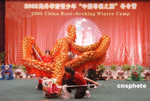 “2005年海外华裔青少年寻根之旅冬令营”十二月二十八日晚在广州华南师范大学闭营,历时十五天, 来自十二个国家和地区的三百名华裔青少年在穗进行了中国民族舞蹈、中华武术、中国历史文化和汉语学习,表现出了他们对中华文化的浓厚兴趣。 作者:罗仰明