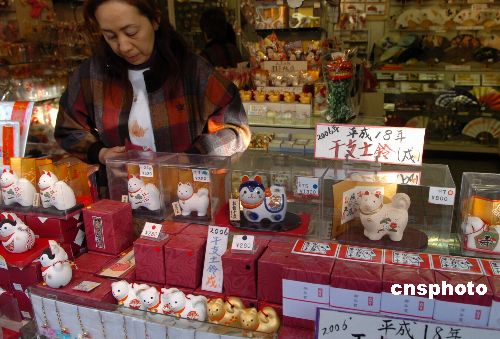 年关将至,日本市场各种年节饰物开始热销。图为商家应时推出的狗年饰物,颇受欢迎。作者:王健