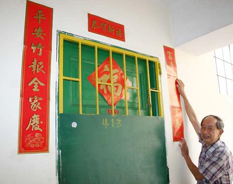 新年将至,秘鲁的华人商铺、住宅纷纷贴出春联,祈求新的一年生意兴隆,全家安康。一位老华侨贴上中国侨办赠送的新年春联。