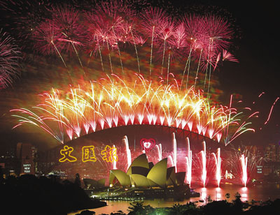 澳洲是全球首个踏入2006年的地区,昨晚有50万人在摄氏45度的高温下,聚集在悉尼歌剧院外,观赏新年烟花汇演,倒数迎新年。当地警方派驻约1700名警员维持秩序,防止冲突或暴动发生。