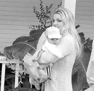 自从布兰妮的小宝宝肖恩.普雷斯顿去年12月初首次亮相《人物》杂志封面后,小家伙一直在家人保护下,安全健康地成长。狗仔想尽办法,整天盯着布兰妮的一举一动,就是没逮到小宝宝。没想到,2005年的最后一天,狗仔总算收到布兰妮给他们的新年厚礼,在布兰妮家附近看见了小家伙,狗仔们第一次用相机近距离拍下了4个月大的肖恩可爱的模样。
