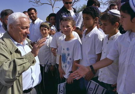 中新网1月5日电 2001年5月4日,以色列总理沙龙访问位于加沙地区古什卡蒂夫的一个犹太人定居点时和少年亲切打招呼。这张照片是由以色利政府新闻办公室提供的。