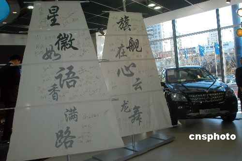 1月6日,由北京汽车工业控股有限责任公司投资的中国首家奔驰旗舰店正式开业,中国首位购买本土生产的奔驰E280型轿车的车主在展厅内与爱车合影。自去年8月30日,北京奔驰-戴姆勒克莱斯勒汽车有限公司正式成立至今仅几个月,国产奔驰轿车就在中国正式实现销售。 作者:张宇