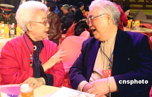 1月7日,中国文学艺术界联合会规模盛大的“百花迎春---中国文学艺术界2006年春节大联欢”在北京奥体中心体育馆隆重举行。图为著名表演艺术家田华和于洋在联欢会上亲切交谈。 作者:张勤
