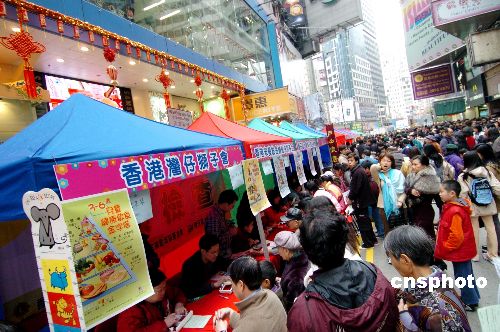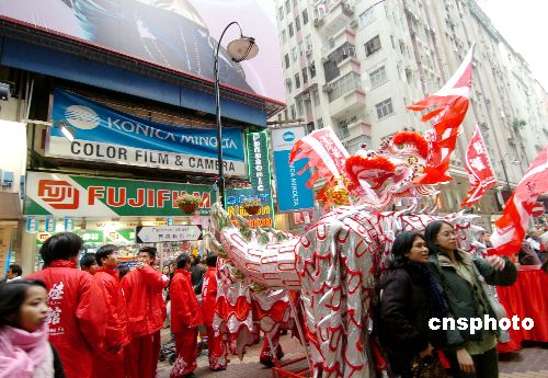 香港铜锣湾区8日举办“铜锣湾嘉年华2006民族共融贺新禧”十多个摊位及表演团体为繁华的闹市增添节日气氛。 作者:洪少葵