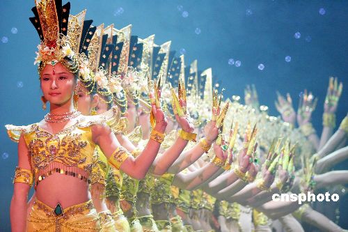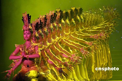 2006年1月11日晚,由中国文联、中国音乐家协会、中国曲艺家协会、中国舞蹈家协会、中国戏曲家协会和郑州市政府联合主办的“爱的致意——送欢乐、下基层中国文艺家郑州大型慈善义演文艺晚会”在河南省人民会堂举行。当天,中国残疾人艺术团表演精彩舞蹈《千手观音》。作者:陈代述