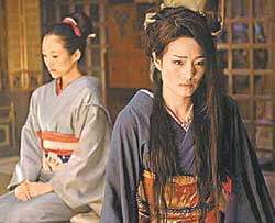 由章子怡、巩俐及杨紫琼3大华裔女星主演的好莱坞大制作《艺伎回忆录》(Memoirs of a Geisha),虽然未能如预期般在美国各大颁奖礼上扬威,但早前公布的英国电影大奖首轮投票结果中,此片暂以15项提名领先,难怪电影在英国举行首映礼,电影公司也隆重其事在会场大事布置一番,令现场极具日本特色。