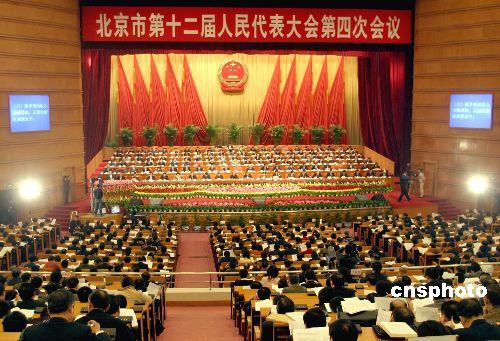 一月十五日,北京市第十二届人民代表大会第四次会议在北京会议中心开幕,北京市市长王岐山作关于北京市国民经济和社会发展第十一个五年规划纲要的报告, 七百余名代表出席会议。作者:张勤