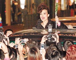 中新网1月17日电 据香港媒体报道,前晚举行的《2005年度十大劲歌金曲颁奖典礼》,赛果尘埃落定,容祖儿三夺“最受欢迎女歌星”,风骚的她坐保母车离开时,俨如女王出巡!而她与刘德华跳辣身舞时,华仔被疑触及她的胸部,事后她坚决否认。