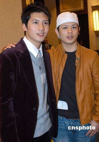歌星关智斌(左)、侧田1月17日在香港出席《2006年度国际华裔小姐竞选》记者会,两位歌星在21日晚华裔小姐竞选夜,分别以钢琴及式士风与佳丽合作演出。中新社传真邓庆乐摄